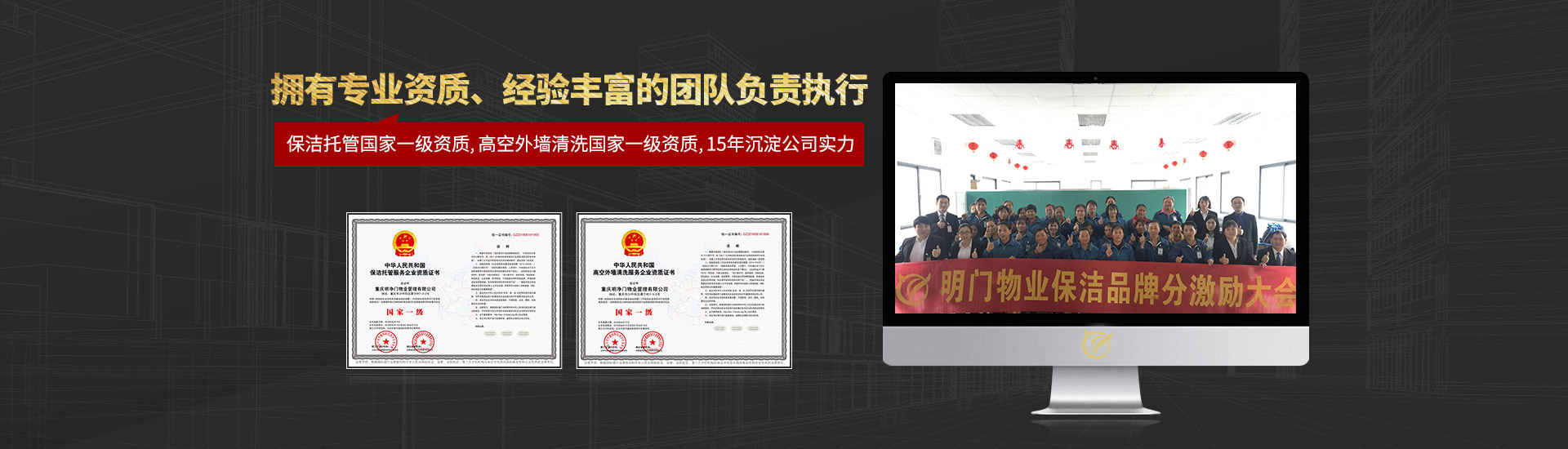 現(xiàn)有員工800多名,100%持證上崗,更有外墻清洗、開(kāi)荒清潔等專(zhuān)業(yè)服務(wù)人員200余名